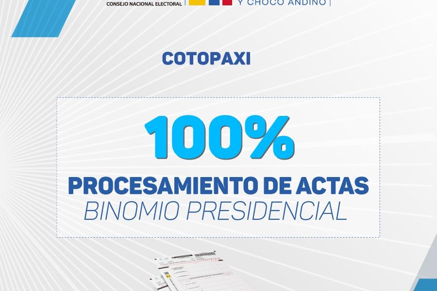 La madrugada de este lunes, 16 de octubre la Junta Provincial Electoral de Cotopaxi, a las 02h44, cerró la Sesión Permanente de Escrutinio con el 100%...
